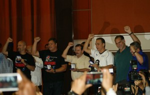 En la misma sala del Palacio de las Convenciones de La Habana, donde fueran condecorados como Héroes de la República de Cuba, condición que ostentaban desde que se dispusieron al cuidado y preservación de nuestra soberanía, fueron acreditados nuestros cinco hermanos pero esta vez con el sello 75 Aniversario de la Central de Trabajadores de Cuba (CTC), momento que sirvió como clausura del Encuentro Internacional de Solidaridad. Ania Álvarez González, jefa del departamento de emulación de la CTC, dio lectura a la justificación para el otorgamiento de esta condecoración. “Sí volvieron Comandante, aquí están, ayer desfilaron junto a su pueblo encarnando las profundas convicciones de Martì y el Che, ustedes son símbolo de inspiración para Cuba y para el mundo, es por ello que el secretariado de la CTC decidió entregar este sello a los cinco. “Ustedes crecidos y educados por la Revolución, procedente de familias revolucionarias, expresión viva de la fuerza de los trabajadores cubanos, tienen familias inmensas que también son parte de esta condecoración, sus madres, esposas e hijos quienes fueron indispensables en esta causa”, expresó el documento. La entrega del sello 75 Aniversario de la CTC a los cinco antiterroristas la realizó Ulises Guilarte De Nacimiento, secretario general de la Central de Trabajadores de Cuba. De manos de los cinco y a nombre de los trabajadores y pueblo cubano en general, fueron reconocidas también organizaciones sindicales y personalidades que hicieron suya esta causa, entre las que se encuentran.