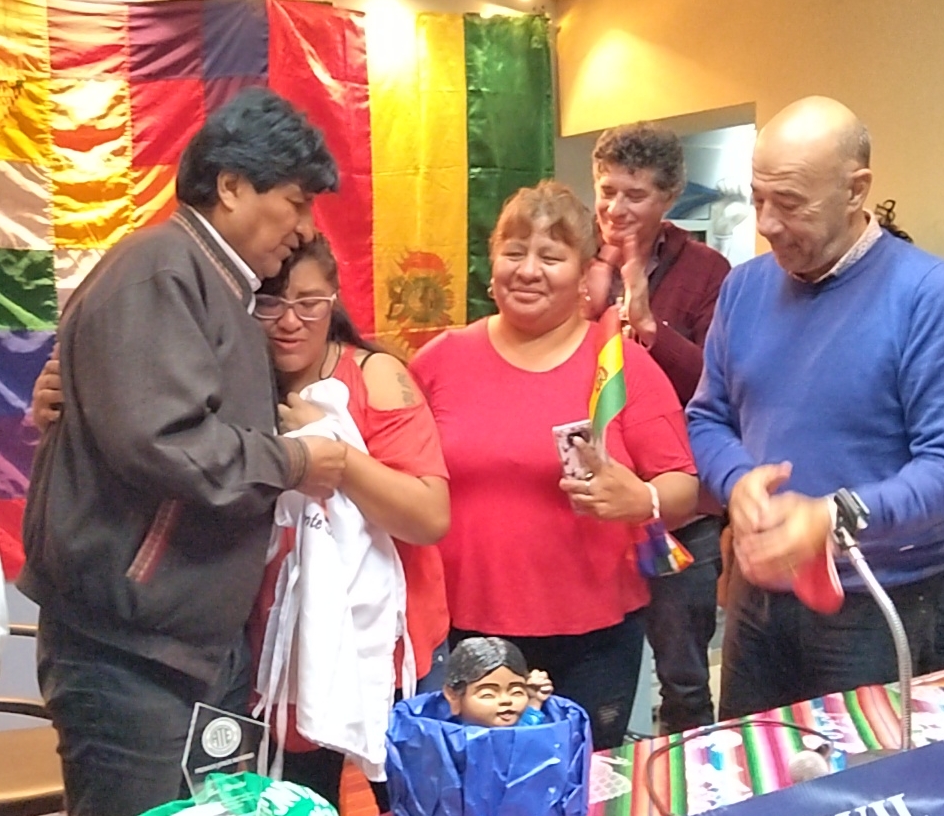 Organizaciones de la CTAA Capital participaron de un encuentro con Evo Morales, en el marco de la presentación del documental sobre su regreso a suelo boliviano.