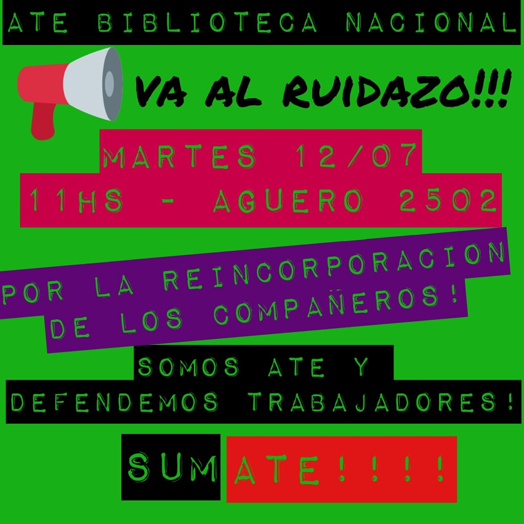 El pasado 6 de julio falleció Ricardo Vanieri, compañero de ATE Biblioteca Nacional. Trabajó allí durante 27 años y era muy querido. No estuvo entre los despedidos, pero su amor militante, su fidelidad a los compañeros, hizo que la lucha de ellos por su reincorporación calara en sus huesos, perjudicando su débil salud. Tanto amor sentía a la causa que, una de sus últimas preguntas antes de partir fue sobre la situación de los compañeros de Biblioteca Nacional. Es por esto que, en su memoria, y por la reincorporación de los despedidos, desde la CTA Capital se convoca a concentrar mañana martes 12 de julio a las 11horas en Agüero 2502, frente a la Biblioteca Nacional.