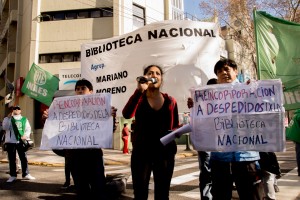 Pablo Vega, compañero de ATE Biblioteca nacional, comentó que, entre varios trabajadores, “entraron a la Biblioteca Nacional para pedir una audiencia con el director y, como no se encontraba, según dijo su secretaria, vería si, antes del viernes se podría coordinar una entrevista para tratar el tema de los despedidos. De no ser así seguiremos el camino de la lucha”.