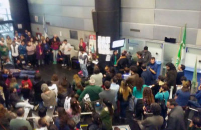 Llevamos cincuenta días reclamando que nos escuchen después de llevar adelante un montón de iniciativas. Ayer (por el miércoles) nos dijeron que nos iban a recibir pero una vez más nos mintieron, así que discutimos en asamblea permanecer en el ministerio hasta el día de hoy (jueves) a la espera de que el ministro nos reciba y además aprovechar la reunión del Consejo del Salario para visibilizar nuestras demandan de reincorporación de nuestros compañeros.