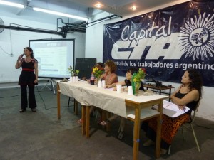 El pasado miércoles 18 de diciembre por la tarde, se realizó en la sede de la Central porteña la inauguración de una muestra gráfica basada en la investigación de Ester Kandel sobre la Ley 5291, que reguló por primera vez en el país el trabajo de las mujeres, niñas y niños. Además, bajo la coordinación de Graciela Córcico, se llevó a cabo una charla en la que expusieron la autora de la investigación; Omar Giuliani, coordinador del Hogar Escuela Ruca Hueney e integrante de la Mesa Provincial de la CTA de Buenos Aires; Jorgelina Sosa, secretaria de Género de CTA Capital y Natalia Cilis del Colectivo de Trabajadores y Trabajadoras de Niñez de la CTA Capital.