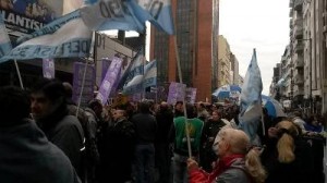 Una nutrida movilización de afiliados al gremio Foetra- Capital se dirigió al Ministerio de Trabajo. “Venimos a denunciar que la cúpula del gremio está firmando un acuerdo salarial que fue rechazado por el 70 por ciento de los trabajadores. Una vez más prefieren obedecer al gobierno antes que a sus bases”, señaló Carlos Artacho, delegado del Edificio Costanera.