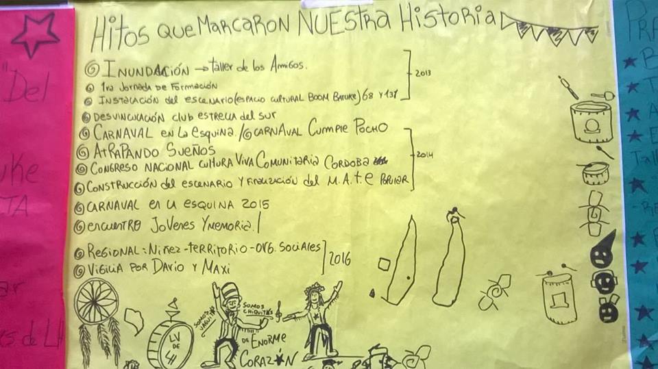 Este fue el primer encuentro de Formación para Educadores, de tres que se van a hacer en este año. Durante la jornada del sábado se trabajó sobre la historia de la lucha por la niñez, en base a cuatro grandes hitos de la infancia. Se armó una gran línea de tiempo donde se fueron contando estos hitos, como la formación del Movimiento de los Chicos del Pueblo, y cada organización se fue ubicando dentro de esa línea de tiempo. El sábado a la noche fue el momento de compartir experiencias, tocaron los compañeros de Boom Batuke y más tarde hubo una fiesta . Durante el domingo se trabajó sobre problemáticas presentes en cada organización, y cómo resolverlas de forma colectiva.