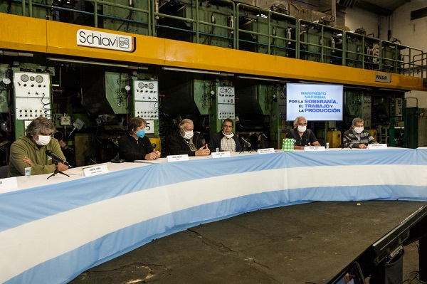 El viernes primero de mayo por la mañana, en la fábrica Cooperativa de Trabajo Envases Flexibles de Mataderos, se llevó a cabo un acto virtual entre sindicatos de diferentes centrales obreras, organizaciones sociales y pymes para presentar el “Manifiesto Nacional por la Soberanía, el Trabajo y la Producción”.