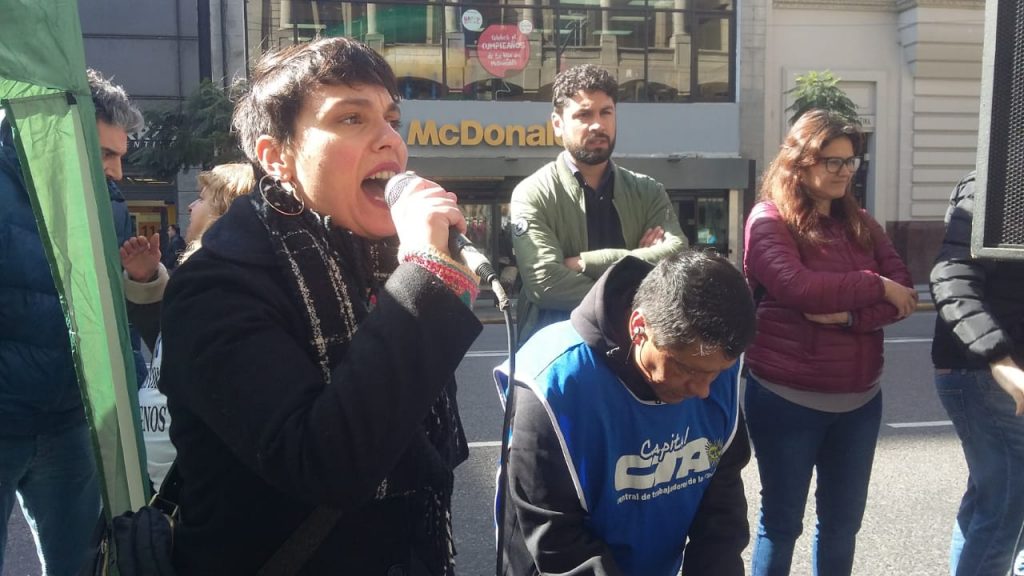 “Las y los trabajadores de OSPLAD estamos realizando esta segunda jornada de retención de tareas, sin asistencia a los lugares de trabajo, porque solamente cobramos el 50 % de nuestros salarios, que en la mayoría de los casos equivale a 15 mil pesos. Somos quienes estamos dando batalla en la primera línea, enfermeros, médicos, profesionales de la salud y administrativos. Además, en el Policlínico del Docente ya tenemos al 20% del personal activo que se ha contagiado de Covid-19 y tres compañeros están dando pelea en la Unidad de Terapia Intensiva para salir de esa situación crítica de salud”, explicó Hebe Nelli, secretaria Gremial de la CTAA Capital y secretaria General Adjunta del SiTOSPLAD-CTAA.