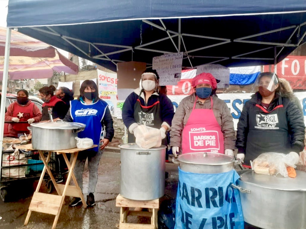 Hoy, por sexto jueves consecutivo, las organizaciones sociales llevaron adelante su Jornada de Lucha y Ollas en más de 20 villas y barrios populares para visibilizar todas las tareas que garantizan y exigir el reconocimiento de las mismas, porque allí donde la emergencia sanitaria y la circulación del virus crece, están las Promotoras de Salud; están los comedores y merenderos sostenidos principalmente por las compañeras mujeres; están las Promotoras de Género; están los espacios de niñes, jardines y bachilleratos populares y están las cuadrillas de recolección de residuos de las cooperativas.