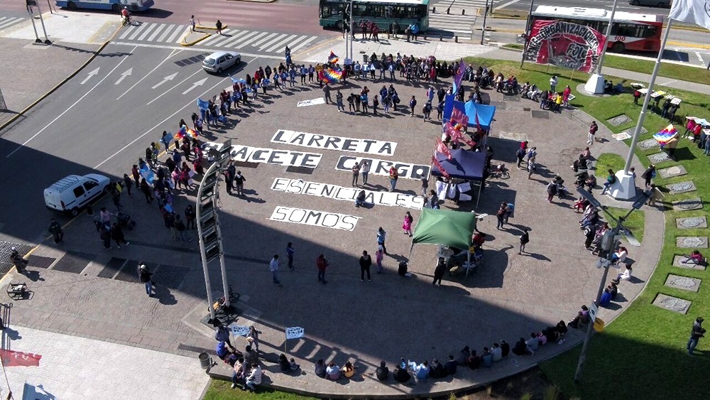 “Aquí, en la Ciudad de Buenos Aires, hace once jueves que venimos reclamándole al Gobierno Porteño que reconozca con pleno derechos a las mujeres trabajadoras comunitarias: promotoras de salud, promotoras contra la violencia de género, promotoras del espacio público, veedoras comunitarias, educadoras populares y cocineras, que gestionan las políticas públicas en los barrios humildes de la Ciudad, sin recursos y sin que su trabajo sea jerarquizado. Por eso estamos exigiendo que sean reconocidas, porque son esenciales y hoy gestionan la pandemia en la primera línea”, explicó María Eva Koutsovitis del Frente de Organizaciones Salvador Herrera (FOSH-CTAA Capital).