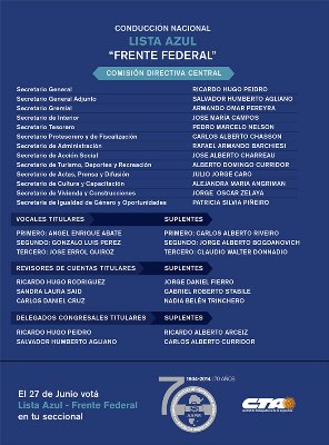 Votá a la lista de tu seccional y a la Lista Azul-Frente Federal a nivel nacional».