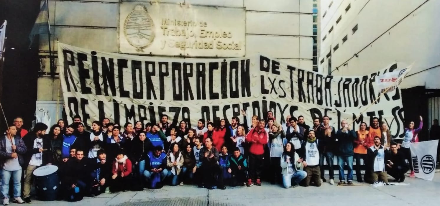 Durante 2017, en pleno proceso macrista, la empresa de limpieza perdió su contrato a raíz de la falta de pago a sus empleados en el mencionado Ministerio, despidió a los 150 trabajadores y trabajadoras y posteriormente cesó en su actividad: una práctica ampliamente difundida en este tipo de empresas en las que se contrataba personal para cada destino y con la caída de cada contrato también caían los trabajadores asignados. Tema a parte son las constantes liquidaciones de haberes mal hechas, las persecuciones a todo tipo de organización, los descuentos mal habidos, los traslados compulsivos y otras formas de abusos patronales.