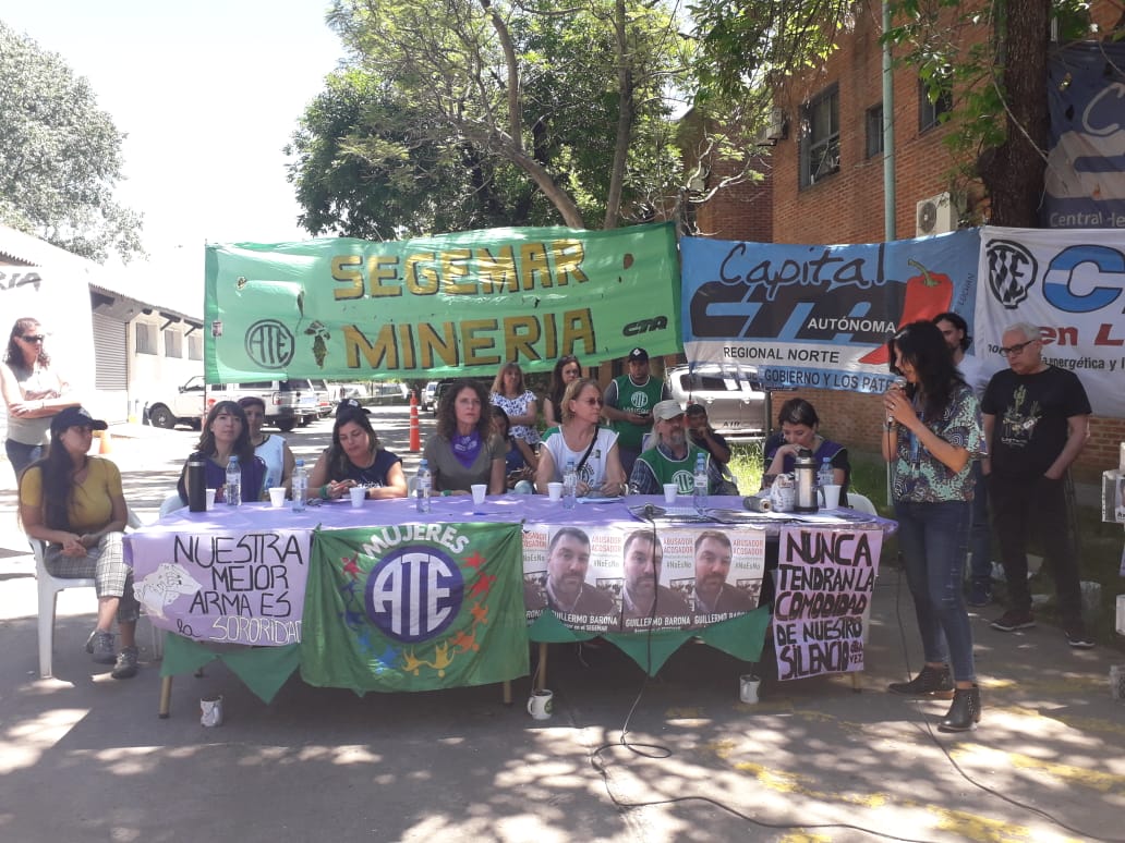La CTAA Capital acompañó este mediodía a las trabajadoras del Servicio Geológico Minero Argentino (SeGeMAr) organizadas en la Asociación Trabajadores del Estado (ATE-CTA) quienes denunciaron mediante conferencia de prensa a Guillermo Barona, asesor funcionario de ese organismo, por acoso sexual hacia una compañera de ese sector.