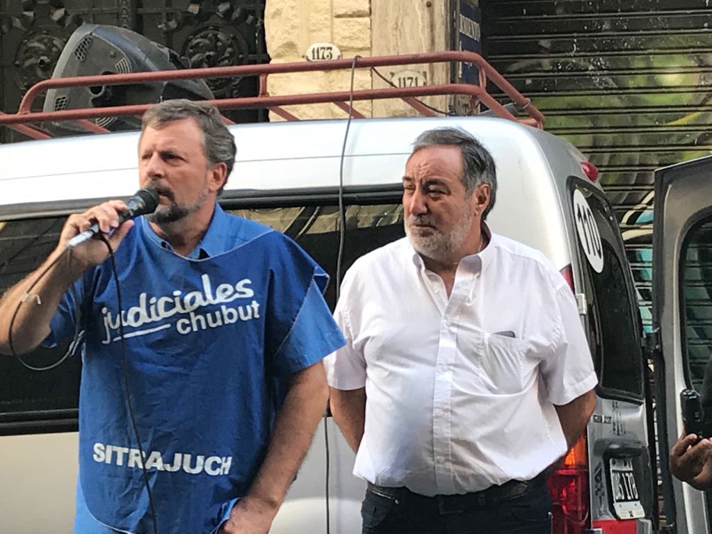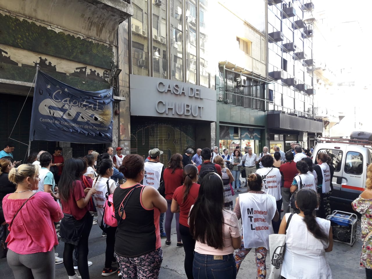 Con el apoyo y la presencia de la Asociación de Empleados del Poder Judicial de la Ciudad de Buenos Aires (AEJBA-CTAA), de la Federación Judicial Argentina (FJA-CTAA), de la CTAA Capital y de las organizaciones que componen a la Corriente Sindical Carlos Chile; los compañeros y compañeras del Sindicato de Trabajadores Judiciales de Chubut llevaron a cabo un acto frente a la Casa de dicha provincia, en pleno centro porteño, para rechazar el pago escalonado de sueldos, entre otros ataques a los derechos de los trabajadores por parte del actual Gobernador, Mariano Arcioni.
