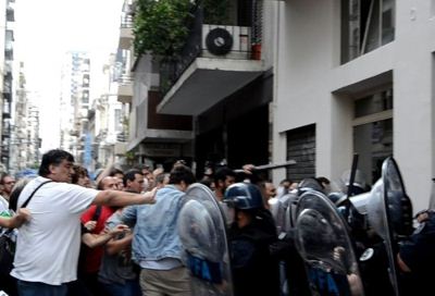 El operativo de la policía estaba específicamente organizado para evitar el ingreso de los delegados, que fueron agredidos violentamente sin miramientos. Mientras tanto, el Ministro de Educación Esteban Bullrich está de vacaciones.