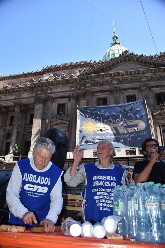 Como todos los años, por estas fechas, los jubilados hicieron el brindis de Pan y Agua. La importancia de esta es que se cumple la marcha de los jubilados número 1341, las cuales se hicieron de manera interrumpida, además de ser la primera luego de la aprobación del proyecto de ley de la reforma previsional.