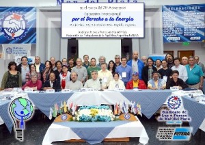 «En este marco, trabajadores/as de distintos países de Nuestra América y Europa (entre ellos: Argentina, Brasil, Chile, Francia, Uruguay y Venezuela) nos reunimos para debatir y convocar públicamente a la defensa del derecho a la energía en oposición a la mercantilización que el capitalismo, especialmente en las últimas décadas, viene instalando.