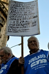 En estas condiciones de subsistencia con procesos inflacionarios, los jubilados tenemos un haber mínimo jubilatorio de 3707 pesos de bolsillo hasta setiembre 2015, que es menor al Salario Mínimo, Vital y Móvil, hoy de 4700 pesos. El 80% de jubilados y pensionados no alcanza a cubrir la canasta básica de un adulto mayor que elabora semestralmente la Defensoría de la Tercera Edad de la CABA.