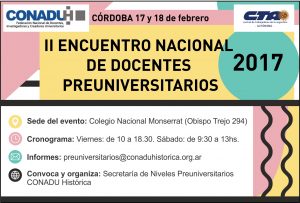 El encuentro se realizará en el Colegio Nacional Monserrat ubicado en Obispo Trejo 294, Córdoba, los días 17 y 18 de febrero de 2017.