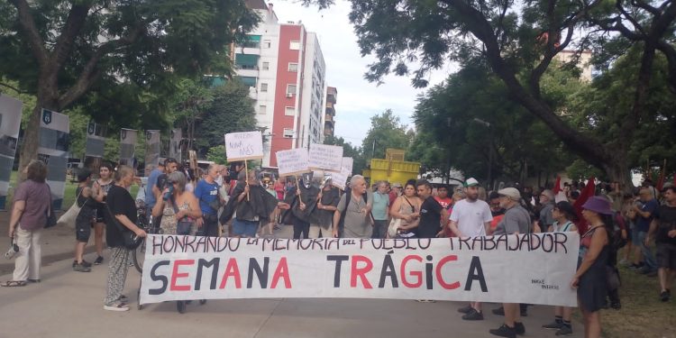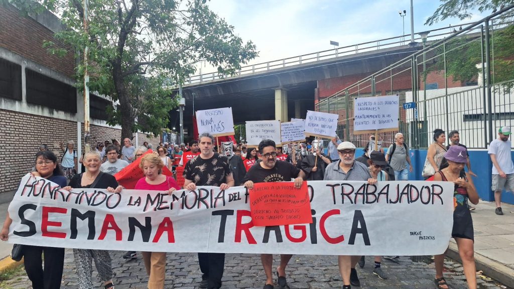 El cronista de Radio Sur Fabio Manupella estuvo presente en la actividad y diálogo con Pablo Spataro, secretario General de la CTA Capital, quien expresó: “Nosotros venimos acá a ejercer la memoria de lucha de nuestro pueblo. Hace 106 años los talleres Vasena y sus trabajadores se levantaban en huelga, protagonizando una semana de rebelión popular, paralizando la Ciudad de Buenos Aires. Se enfrentaron, no solamente al gobierno de Yrigoyen, sino también a las fuerzas de seguridad, a las fuerzas paramilitares que querían acallar ese reclamo. Y hoy nos impulsamos en esa historia para tomar las fuerzas necesarias para enfrentar el modelo de ajuste que estamos viviendo en Argentina.”