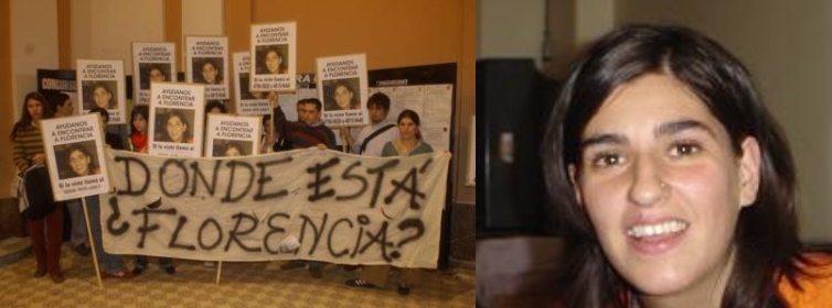 1 En la primera, dice que estaba bien y acompañada de un chico de 21 años, y que ella le dijo que no quería ni pensaba volver a su casa, que le dijo donde se encontraba parando con este chico, y que este dato no pensaba aportarlo a la investigación. La segunda vez, dice haberla visto durmiendo en un cantero, toda despeinada y sucia, que se le acercó a hablar y vio que estaba golpeada, que tenía marcas en los brazos como si hubiera sido atada, y que se encontraba “desorbitada”. Que le dijo: “Florencia, ¿qué te pasa?, ¿sos vos?, ¿querés que te lleve a tu casa?, te están buscando” que ahí Florencia se paró, la empujó y salió corriendo hacia una plaza (Causa 17.697/05). Seguimos durante meses denunciando la desaparición por los medios, haciendo actos todas las semanas en la Facultad de Ciencias Económicas, yendo a dar declaraciones, recibiendo llamadas, pero sin ningún resultado. Tampoco se obtuvo ningún dato de las llamadas que se atendieron en la Red Solidaria. Juntamos dinero y conseguimos presentar un habeas corpus, pero esto tampoco dio el resultado esperado. También pedimos un Informe de Fronteras para saber si había salido del país, pero desde la Dirección de Límites y Fronteras dijeron que no podían asegurar nada, dado que no existe un verdadero control sobre los pasos fronterizos.