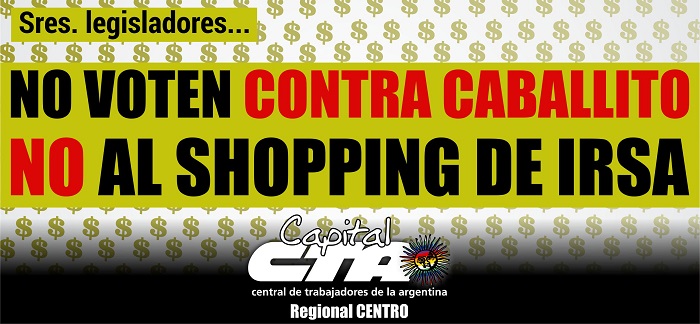 Guiados por la concepción de que la defensa de los trabajadores es también la defensa de su calidad de vida, desde la CTA Capital Regional Centro rechazamos este nuevo intento del PRO por impulsar medidas urbanísticas particulares que sólo buscan favorecer a una empresa amiga del poder como es IRSA, mientras se descuida y ningunea nuevamente el derecho a una vida digna por parte de los vecinos de la zona. Al mismo tiempo, exigimos al gobierno de la Ciudad que escuche y considere la propuesta de creación de un parque público en dicho terreno, elaborada por vecinos y especialistas, basada en los requisitos de instituciones educativas y deportivas de las comunas 6 y 7.