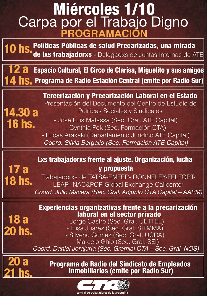 flyer 2Bajo el lema “Paremos la precarización” se montó una carpa en el obelisco para hacer visible una problemática central que afecta a toda la clase trabajadora.