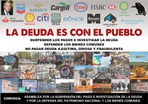 La Asamblea iniciará de esta manera la campaña para que se suspendan todos los pagos hasta completar la auditoría participativa e integral de la deuda y se asegure la defensa prioritaria de nuestros derechos humanos, el patrimonio nacional y los bienes comunes.