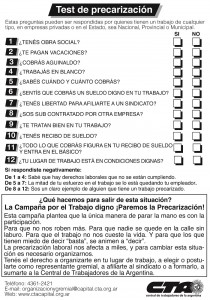 – La precariedad a simples rasgos es de igual manera que figura en este test (Ver Test de la Precarización). Se hace visible en la Obra Social, por lo mínimo de nuestro salario, tenemos un mínimo aporte patronal para poder acceder a la Obra Social de la UTHGRA. También en las vacaciones, que no son pagas, porque en realidad pertenecemos a la parte jornalera. El aguinaldo es una parte proporcional que se acuerda de palabra con la patronal y se combina un muy bajo monto. El 50% es trabajo en negro, es decir, nos cubre a penas para tener una Obra Social. No tenemos libertad para sindicalizarnos, no nos dan la ropa, entre otras cosas.