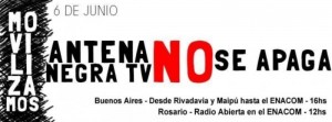 Compañeros y compañeras del Canal Comunitario Antena Negra TV, que salía al aire en la Ciudad de Buenos Aires y que podía verse en la TDA (Televisión Digital Abierta), fueron imputados por “interferencia de las comunicaciones”. Por esta razón hoy lunes 6 de junio a a las 16 horas se movilizarán desde Rivadavia y Maipú hasta el edificio del Enacom. Para hablar de este tema desde Estación Central (Radio Sur, FM 88.3) se comunicaron con Leila, una de los integrantes del canal comunitario.