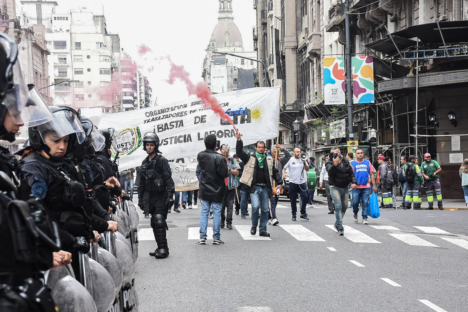 Luego de una jornada de lucha nacional, llevada el día de ayer en las puertas del Congreso de la Nación, los compañeros y compañeras organizados en la OSTV-CTAA salieron hoy a la calle nuevamente a exigir que se termine con la burocracia en su sector; ante el ajuste de Macri, la reapertura de paritarias ya; no a la reforma laboral que vienen sufriendo hace años; basta de cooperativas de seguridad; por 8 horas de trabajo bien pagas; salario no menor a la canasta familiar; por un nuevo convenio colectivo de trabajo, que incluya a las compañeras vigiladoras y a los compañeros custodios; entre otros.