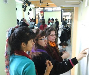 Con las paredes vueltas caballetes, en grupo fueron poniendo en papel con carbonilla la consigna. Y entonces, la definición de construcción colectiva se hizo cierta y visible.