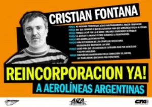 El día 20 de agosto, Aerolíneas Argentinas debería haber reinstalado en su puesto de trabajo a Cristian Fontana, ya que la Justicia Laboral así lo ordenó. Sin embargo, la empresa desconoció a la Justicia.