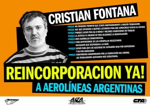cristian_fontana_reincorporacion_yaEl viernes 1 de noviembre a las 10.30 se realizará una movilización para acompañar a Cristian Fontana en  una audiencia convocada por los jueces de la Cámara de Apelaciones Laboral a la que también ha sido citada la empresa Aerolíneas Argentinas.