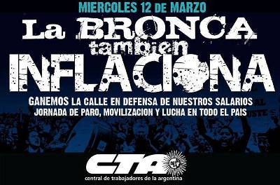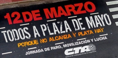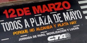 En un comunicado de prensa, la Central de Trabajadores de la Argentina reiteró su convocatoria a la marcha del próximo 12 de marzo a Plaza de Mayo en defensa del salario y contra el ajuste que aplica el Gobierno. Informó que la concentración se realizará a las 16.00 en Avenida de Mayo y 9 de Julio.Este martes a las 17 horas en la sede nacional la Central de Trabajadores de la Argentina, Lima 609, se ofrecerá una conferencia de prensa para dar cuenta de las concentraciones y marchas que tendrían lugar en todo el país, en adhesión a la jornada.