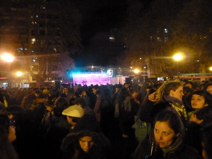 Las actividades en la plaza culminaron con un festival musical organizado por Socorristas en Red, que contó con bandas en vivo, y la proyección de un documental.