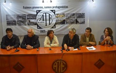 “ATE tiene casi 300 mil afiliados y sólo cinco de ellos pertenecientes a las filas del gobierno nacional impugnaron el proceso electoral. Con una celeridad que sorprende, en 72 horas el Ministerio de Trabajo de la Nación dio lugar a la impugnación y anuló la fecha elegida postergándola a partir de 40 días después”, explicó Julio Fuentes en conferencia de prensa, acompañado de dirigentes de la conducción nacional, bonaerense y porteña.