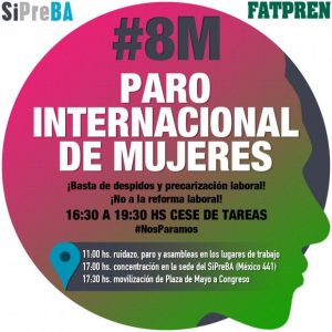 «Por todo esto llamamos a todo el gremio de prensa a participar del Paro Internacional de Mujeres y su movilización para exigir la inmediata reincorporación de las trabajadoras y trabajadores despedidos de Radio Nacional y el repudio en particular del despido a una compañera embarazada y la expulsión del jardín de la hija de una de las despedidas.