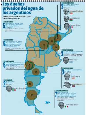 La treintena de casos que Tiempo pudo contabilizar en el mapa argentino dan cuenta del accionar de empresarios nacionales y extranjeros que se adueñan de recursos naturales públicos para garantizar sus negocios. Sin dudas, hay muchos más. Y esto sucede a cuatro meses de la reglamentación de la Ley de Tierras, que busca poner fin a este tipo de especulación de los privados y a la complicidad de los estados municipales y provinciales. <