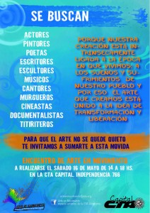 convocatoria-01.redimensionadoSe invita a los compañeros y compañeras a participar del encuentro de Arte en Movimiento, que se realizará el sábado 16 de mayo de 14 a 18 horas en la sede de la CTA Capital -Avenida Independencia 766.