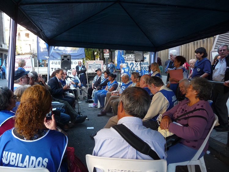 – Bueno, yo creo que es una jornada realmente importante porque hoy es un tema político en todas sus expresiones, no tienen en la agenda debatir qué pasa con la Seguridad Social en Argentina. Este símbolo de 23 años marchando, donde hubo períodos de saqueo del sistema a través de las privatizaciones; de achatamiento de la pirámide de haberes, tal cual hoy está ocurriendo, donde casi el 80 por ciento de los jubilados están en un haber mínimo que no cubre el 50 por ciento de su canasta básica; realmente amerita ver cómo resolver la cuestión en términos estructurales y creo que esta ausencia de debate no es casual, porque este debate necesariamente debe incluir la estructura fiscal en la Argentina. Porque hoy la Seguridad Social, a diferencia de lo que fue el concepto de post guerra, ya no se financie desde el trabajo. El 50 por ciento de lo que ingresa al sistema en nuestro país proviene de impuestos, y de esos impuestos el que más aporta ese el IVA, fíjense que paradoja, el más regresivo de los impuestos, el que afecta a los más pobres, tiene que bancar a los pobres jubilados. Esto no le da carácter de sustentabilidad, salvo que naturalicemos que los jubilados se tienen que morir de hambre, o tienen que hacer juicios eternos donde los sorprende la muerte en el curso de su tramitación antes de gozar de un derecho que les compete por haber trabajado toda una vida.