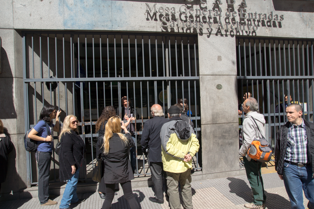 Mientras algunos repartían y pegaban algunos volantes, otra vecina hablaba por un megáfono para hacer pública esta problemática, fundamentada en el uso que el Gobierno de la Ciudad le pretende dar a ese predio. Un reclamo pacífico de porteños que tuvo como reacción el cierre de absolutamente todas las puertas de acceso al edificio y la aparición de numerosos agentes de la Policía Metropolitana para “custodiar” dichos accesos ante la “amenaza” de un grupo no mayor a las 50 personas. Este operativo causó dolores de cabeza a vecinos que precisaban ingresar para hacer trámites, mensajeros y carteros que debían dejar correspondencia, trabajadores del lugar y público en general. Una señora que precisaba hacer un trámite con cierta urgencia, reclamó ante los guardias y los agentes pero, como es habitual en estos casos, ninguno atendió su reclamo. Y esto se multiplicó por decenas durante unas cuantas horas. Nadie entendió el motivo de semejante determinación, así como tampoco la de no recibir al pequeño grupo que pudo ingresar antes del cierre de las puertas.