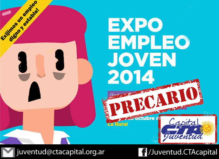 Por eso desde la Juventud de la CTA vamos a realizar una radio abierta este miércoles 29 de octubre a las 13:30hs en la puerta de la exposición en La Rural como continuidad de la campaña por trabajo digno y contra la precarización laboral, difundiendo el derecho a tener un trabajo digno, no importa si es el primer empleo o el último.