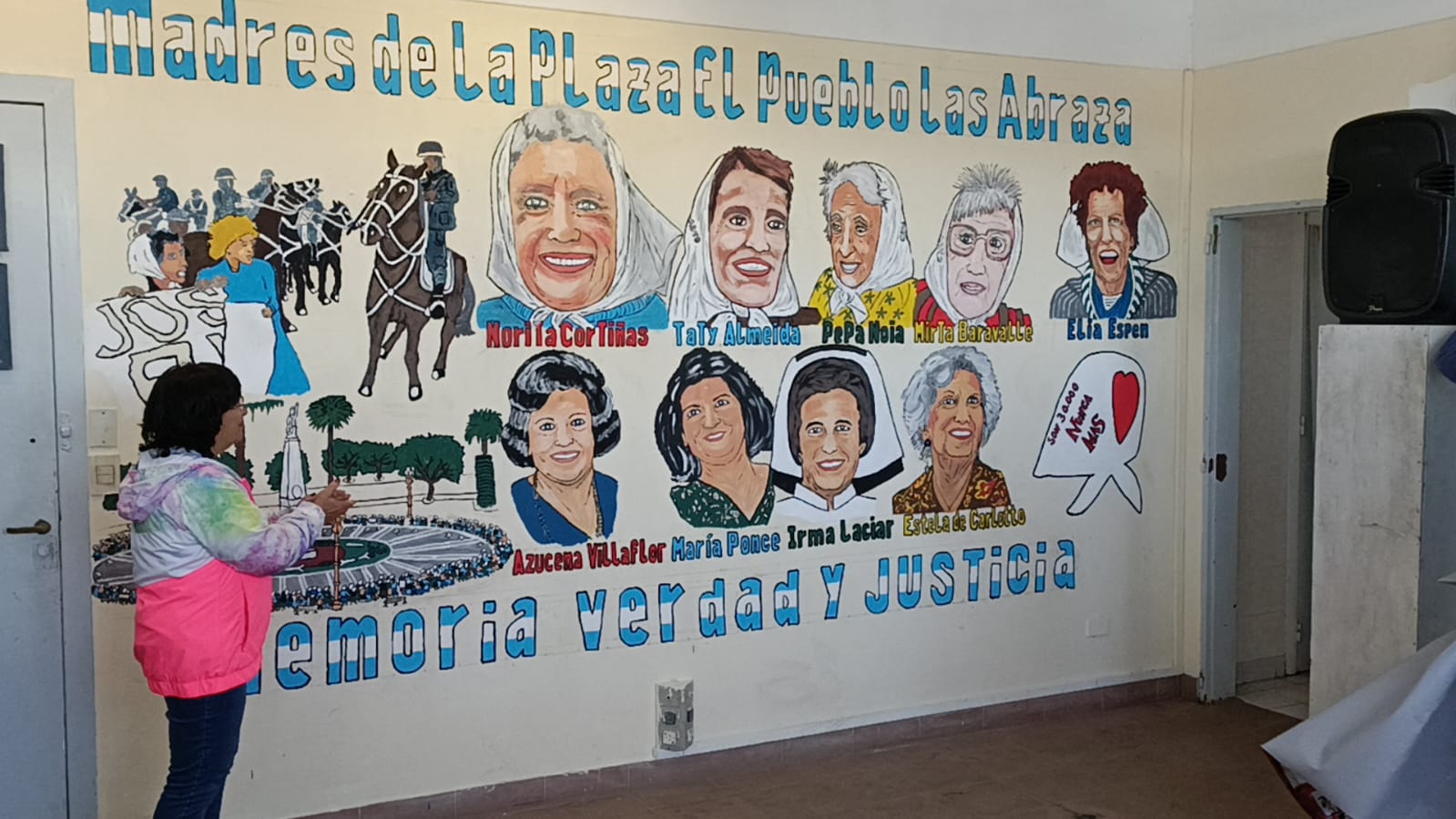 Margarita Noia, al descubrir el segundo mural, expresó: “Me emociona muchisimo ver a nuestras madres luchadoras, que nos acompañan permanentemente en cada ronda, en cada marcha, ayer con los jubilados, siempre junto a nosotros, a las y los trabajadores, como acompañaron durante años los abrazos del INDEC, de tantos organismos y sectores de trabajo y tantos otros momentos de lucha de nuestro pueblo que ellas acompañaron, porque las Madres son una lucha de ayer, de hoy y de siempre”.