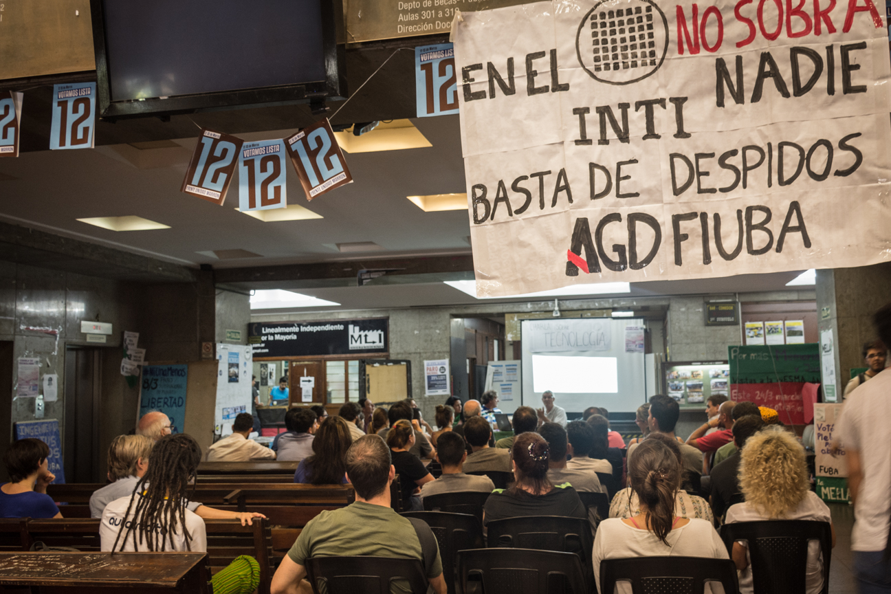 Durante la clase abierta se expusieron las actividades que realiza el INTI y su relevancia en la vida social de los argentinos y cómo el plan de ajuste general, aplicado por el gobierno de Macri en ciencia y tecnología, puede afectarla. Los despidos, el achicamiento de instituciones como el INTI junto con el recorte en el presupuesto a la Facultad de Ingeniería, anunciado por la Secretaria de políticas universitarias Danya Tavela en el Consejo Interuniversitario Nacional, fueron algunos de los motivos para debatir y pensar qué funciones deben cumplir la facultad y los organismos de ciencia y técnica frente a dichos ajustes.