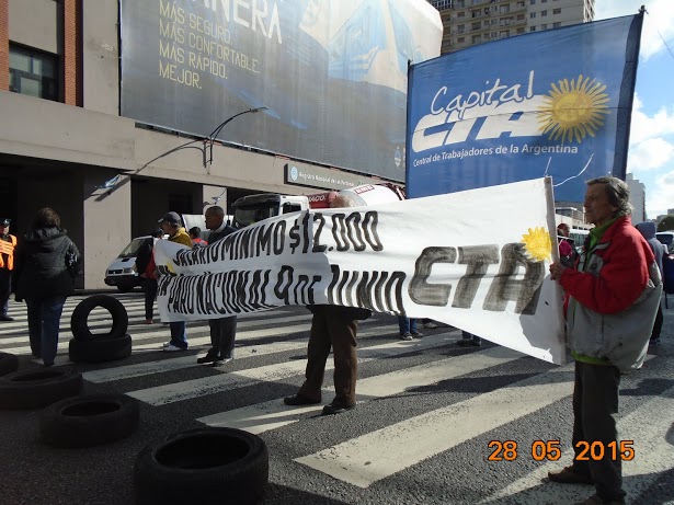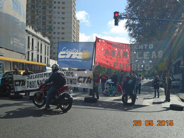 La CTA Capital llevó a cabo ayer jueves 28 de mayo una jornada de lucha en la que se realizaron cortes de calle en puntos nodales de la Ciudad. Algunos de los piquetes se ubicaron en el cruce de General Paz y Constituyentes, Avenida de Mayo y Piedras, en la estación Ferroviaria de Retiro, en las avenidas Caseros y Entre Ríos, Paseo Colón y Humberto Primo, entre otros puntos. Por su parte, la Asociación Trabajadores del Estado (ATE-CTA) realizó un paro a nivel nacional y se movilizó desde el Obelisco hasta la Secretaría de Gestión Pública.