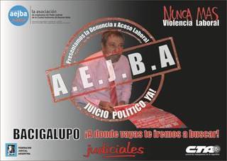 A raíz de las reiteradas denuncias de trabajadores de la Sala II de la Cámara de Apelaciones en lo Penal y Contravencional de la Ciudad de Buenos Aires, dado la violencia laboral ejercida hacia ellos por el Juez Pablo Bacigalupo, la Asociación de Empleados Judiciales de la Ciudad de Buenos Aires (AEJBA) –sindicato que nuclea a lo judiciales porteños, y que se encuentra adherido a la Federación Judicial Argentina (FJA) y a la CTA– denunció formalmente y pidió la remoción a través del Juicio Político de dicho magistrado ante el Consejo de la Magistratura de esta ciudad.