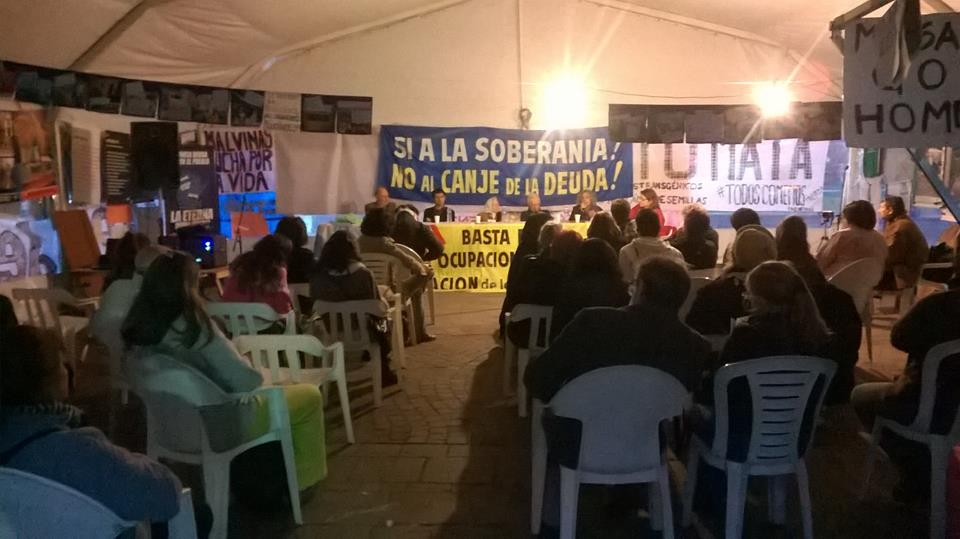 La instalación contó con paneles informativos y de debate, intervenciones artísticas y stands de las organizaciones y asambleas con el fin de procurar, abrir y enlazar caminos para la construcción de un modelo alternativo que erradique para siempre el saqueo de las divisas a través de la deuda externa y de los bienes comunes, su contaminación y destrucción solo para complacer los intereses de los grandes poderes mundiales y sus cómplices locales.