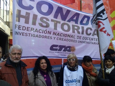 Estuvo presente en el acto una delegación de la CONADU Histórica-CTA-A, encabezada por su secretario general, Luis Tiscornia y su secretaria de Formación, Claudia Baigorria. La Federación de Docentes Universitarios manifestó su repudio a la represión en un comunicado de prensa en el que exigió “el cese de la persecución a la protesta social y la inmediata respuesta por parte del gobierno provincial” a los legítimos reclamos de los trabajadores. También estuvo presente José «Pepe» Peralta, secretario General de la CTA-A Capital.