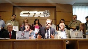 Ante una nutrida presencia de medios, referentes políticos y sociales y compañeros y compañeras de distintas organizaciones, el secretario General de la CTA Autónoma, Pablo Micheli, el representante de Consumidores Libres, Héctor Polino y el Defensor de la Tercera Edad, Eugenio Semino, lanzaron este martes por la tarde formalmente la campaña “# SúperVacíos” que se llevará a cabo el jueves 7 de abril y apuesta a que ese día la ciudadanía en general exprese un fuerte mensaje al no comprar nada a las grandes cadenas de supermercados que fomentan la inflación pero, también, al Gobierno nacional que no ha tomado medidas al respecto.