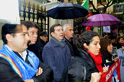 Luego de ingresar a la embajada junto a otros compañeros Adolfo Aguirre, contó que el embajador recibirá a la comisión el próximo viernes a las 11.00: “No vamos a dar un paso atrás en la lucha de los docentes y los médicos contra la privatización de la educación y la salud”, afirmó y analizó: “esto es parte de la política del presidente Peña Nieto que constituye un ensayo para toda la región”.