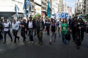 “Estos hechos se han agravados cuando este sábado 14 de abril a la madrugada han desatado una verdadera cacería de dirigentes y trabajadores, atacando sus casas con bombas de estruendo, violando cerraduras y deteniendo ilegalmente (de noche) violando domicilios golpeando a los compañeros delante de sus familias y niños con actos propios de tiempos que creíamos que ya no volveríamos a vivir”, decía el documento que también rechaza las decisiones “inconstitucionales de fiscales y jueces funcionales al ajuste a quienes les recordamos que los Derechos de Reunión, de Expresión, a la Protesta Social y a la Libertad Sindical son derechos humanos fundamentales y no delitos”.